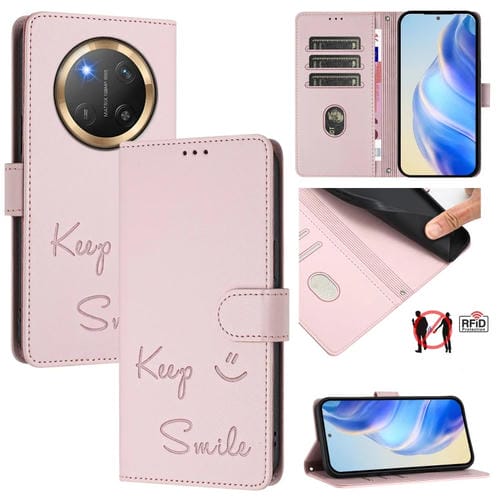 Funda de Cuero Rfid con Relieve Sonrisa Global para Honor X9C 5G (Rosa)