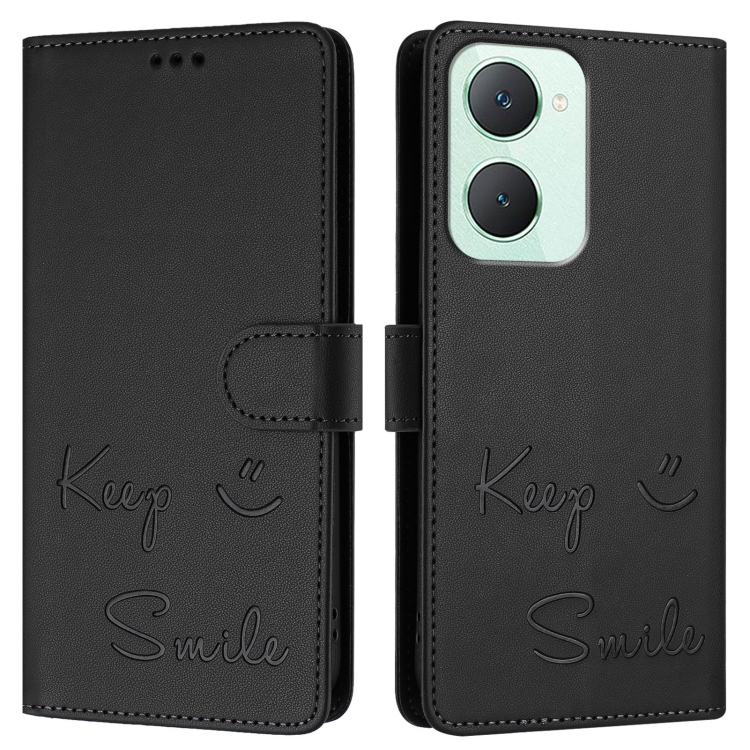 Funda de Cuero Rfid con Relieve de Sonrisa Global para Vivo Y03 4G (Negra)