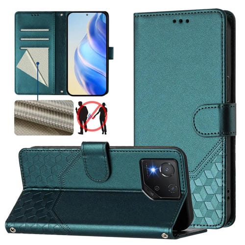 Funda de Cuero Rfid con Relieve En Panal para Asus Rog Phone 8/8 Pro (Verde Pavo Real)