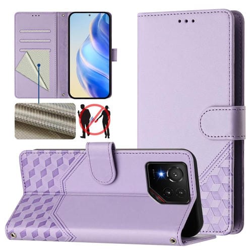 Funda de Cuero Rfid con Relieve en Panal para Asus Rog Phone 9/9 Pro (Morado Claro)