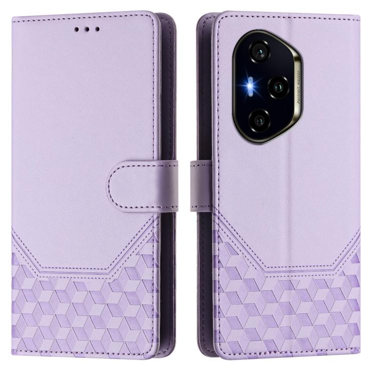 Funda de Cuero Rfid con Relieve en Panal para Honor 300 Pro 5G y 300 Ultra 5G (Morado Claro)