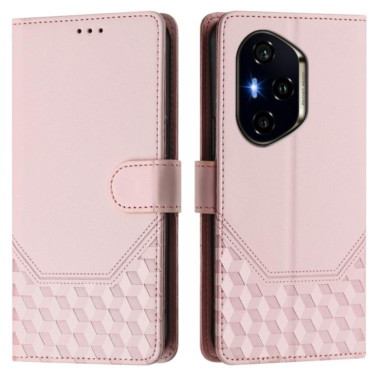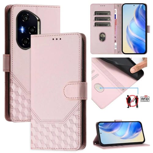 Funda de Cuero Rfid con Relieve en Panal para Honor 300 Pro 5G y 300 Ultra 5G (Rosa)