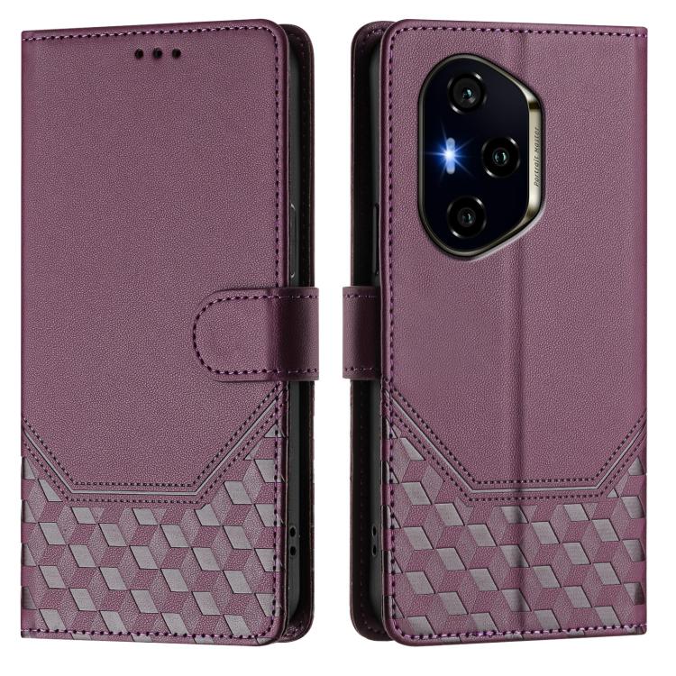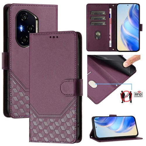 Funda de Cuero Rfid con Relieve en Panal para Honor 300 Pro 5G/300 Ultra 5G (Violeta)