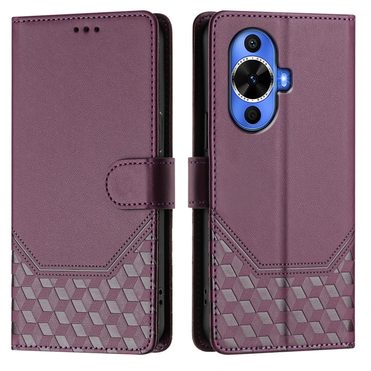 Funda de Cuero Rfid con Relieve en Panal para Huawei Nova 12S 4G (Violeta)