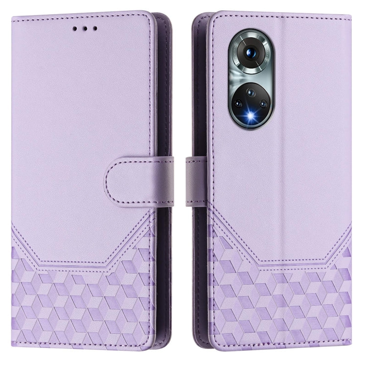 Funda de Cuero Rfid con Relieve en Panal para Huawei Nova 9 (Morado Claro)