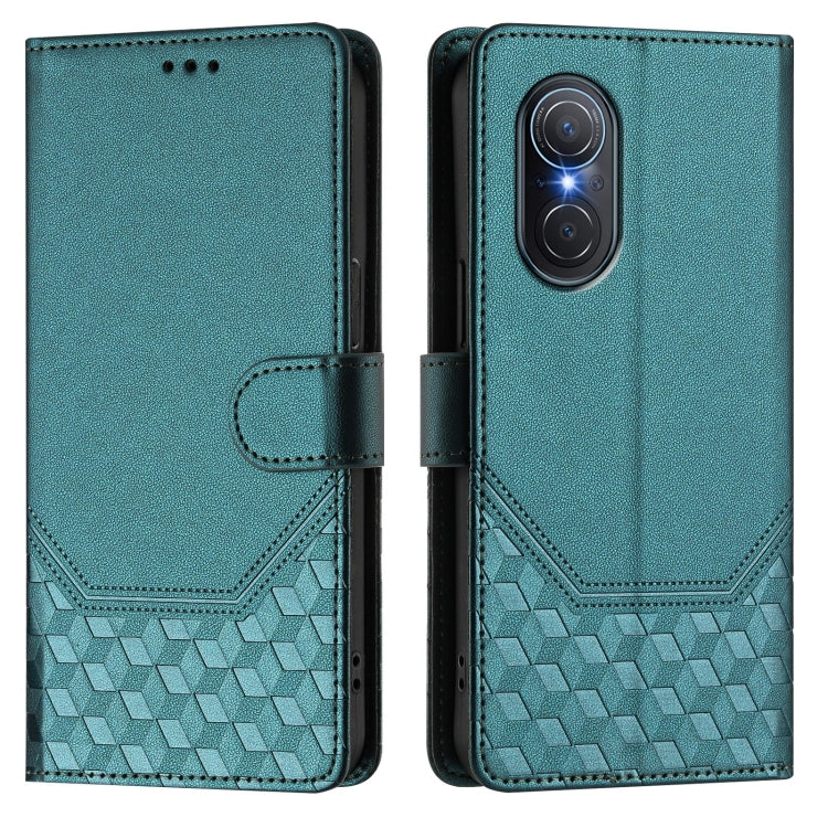 Funda de Cuero Rfid con Relieve en Panal para Huawei Nova 9 Se y Honor 50 Se (Verde Pavo Real)