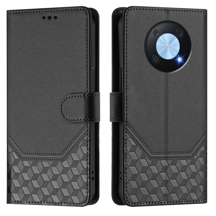 Funda de Cuero Rfid con Relieve en Panal para Huawei Nova Y90 (Negra)