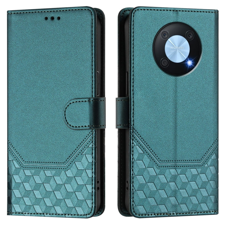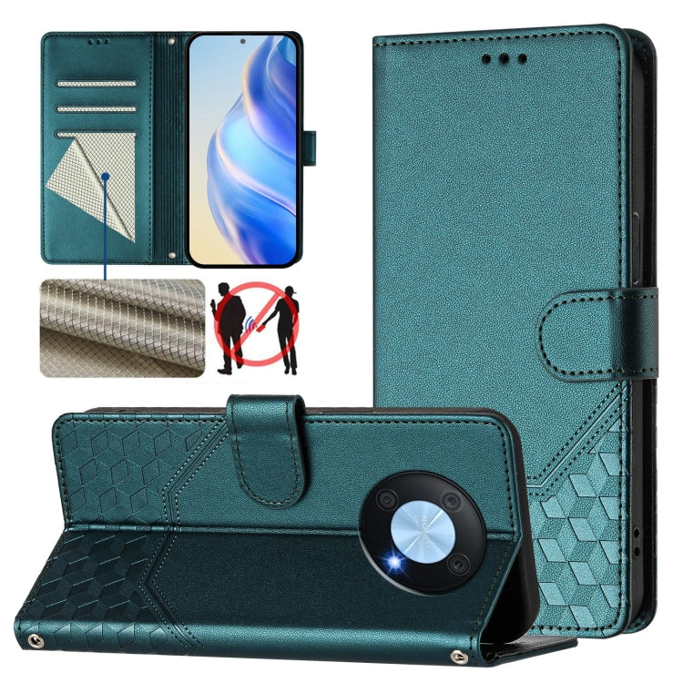 Funda de Cuero Rfid con Relieve en Panal para Huawei Nova Y90 (Verde Pavo Real)
