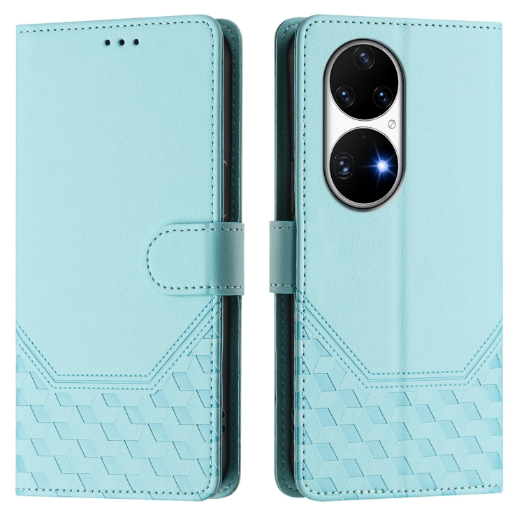 Funda de Cuero Rfid con Relieve en Panal para Huawei P50 Pro (Verde Menta)