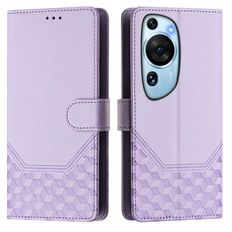 Funda de Cuero Rfid con Relieve en Panal para Huawei P60 (Morado Claro)