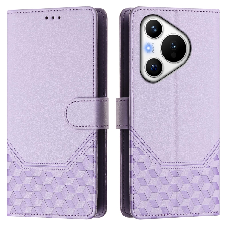 Funda de Cuero Rfid con Relieve en Panal para Huawei Pura 70 (Morado Claro)