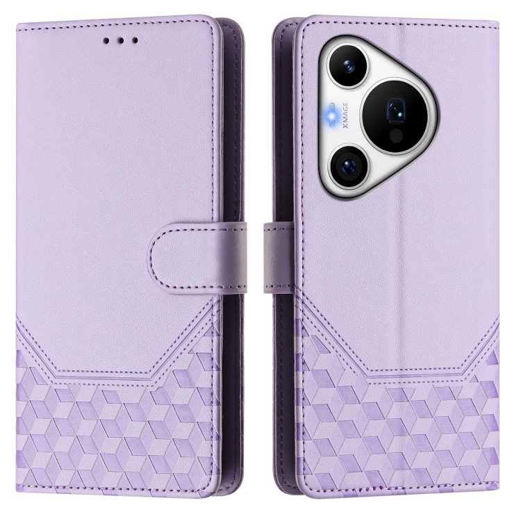 Funda de Cuero Rfid con Relieve en Panal para Huawei Pura 70 Pro y Pura 70 Pro+ (Morado Claro)