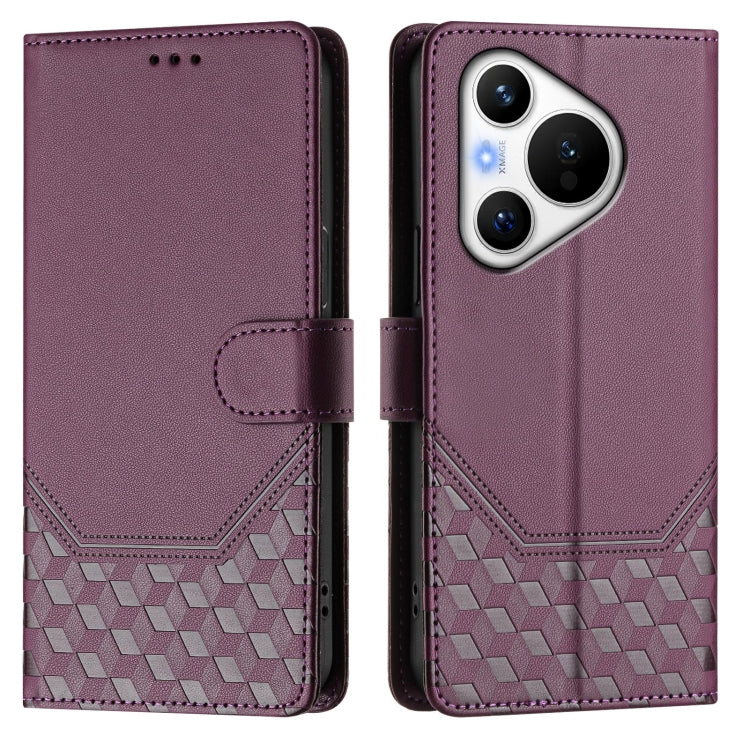 Funda de Cuero Rfid con Relieve en Panal para Huawei Pura 70 (Violeta)