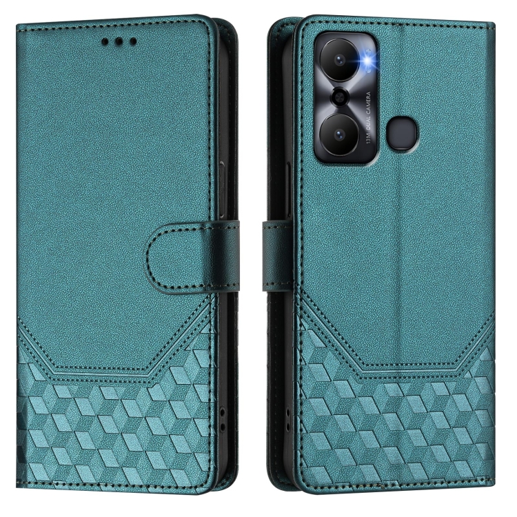 Funda de Cuero Rfid con Relieve en Panal para Infinix Hot 20 Play (Verde Pavo Real)