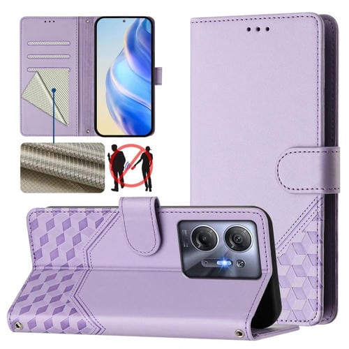 Funda de Cuero Rfid con Relieve en Panal para Infinix Hot 30 5G (Morado Claro)