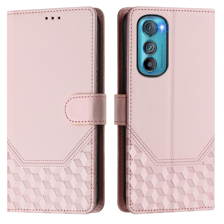 Funda de Cuero Rfid con Relieve en Panal para Motorola Edge 30 (Rosa)