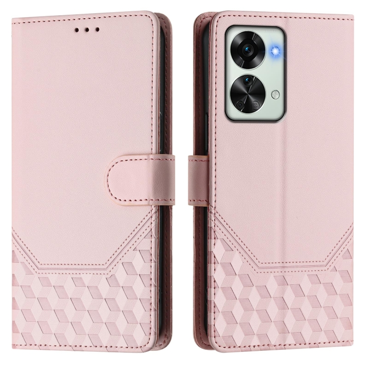 Funda de Cuero Rfid con Relieve en Panal para OnePlus Nord 2T (Rosa)