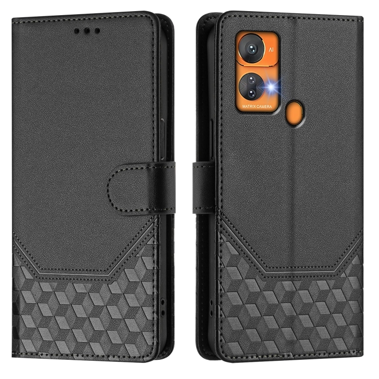 Funda de Cuero Rfid con Relieve en Panal para Oukitel C33 (Negra)