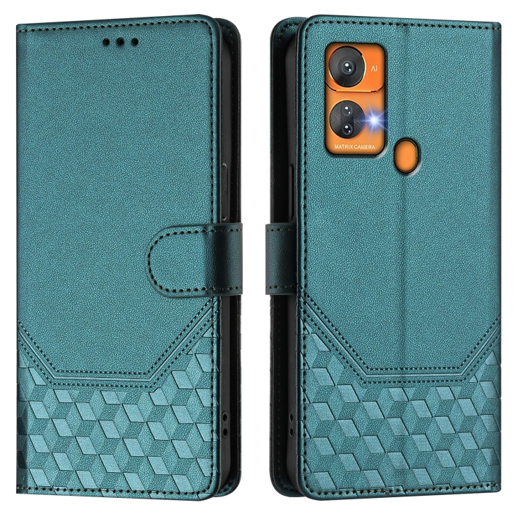 Funda de Cuero RFID con Relieve en Panal para Oukitel C33 (Verde Pavo Real)