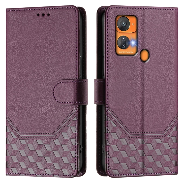 Funda de Cuero Rfid con Relieve en Panal para Oukitel C33 (Violeta)