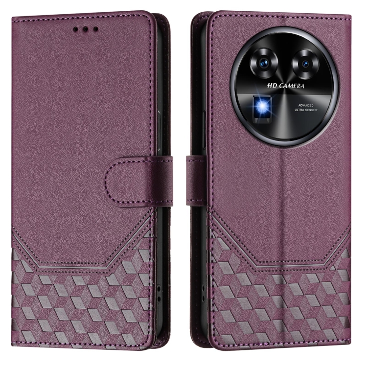 Funda de Cuero Rfid con Relieve en Panal para Oukitel C37 (Violeta)
