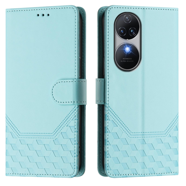 Funda de Cuero Rfid con Relieve en Panal para Oukitel C38 (Verde Menta)