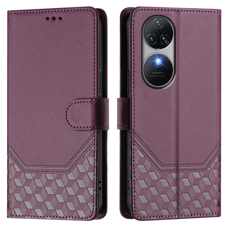 Funda de Cuero Rfid con Relieve en Panal para Oukitel C38 (Violeta)