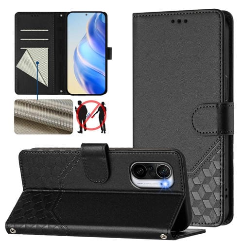 Funda de Cuero Rfid con Relieve En Panal para Redmi K40/K40 Pro (Negra)
