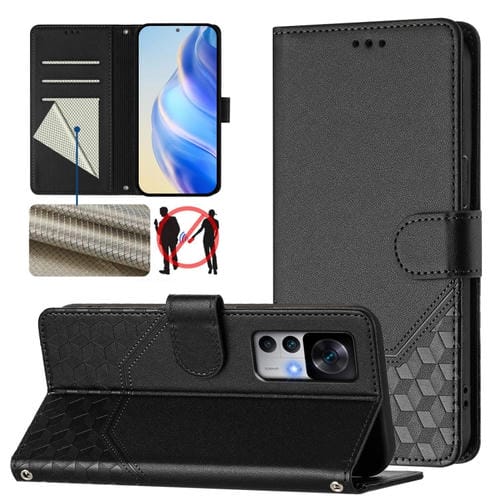 Funda de Cuero Rfid con Relieve En Panal para Redmi K50 Ultra (Negra)