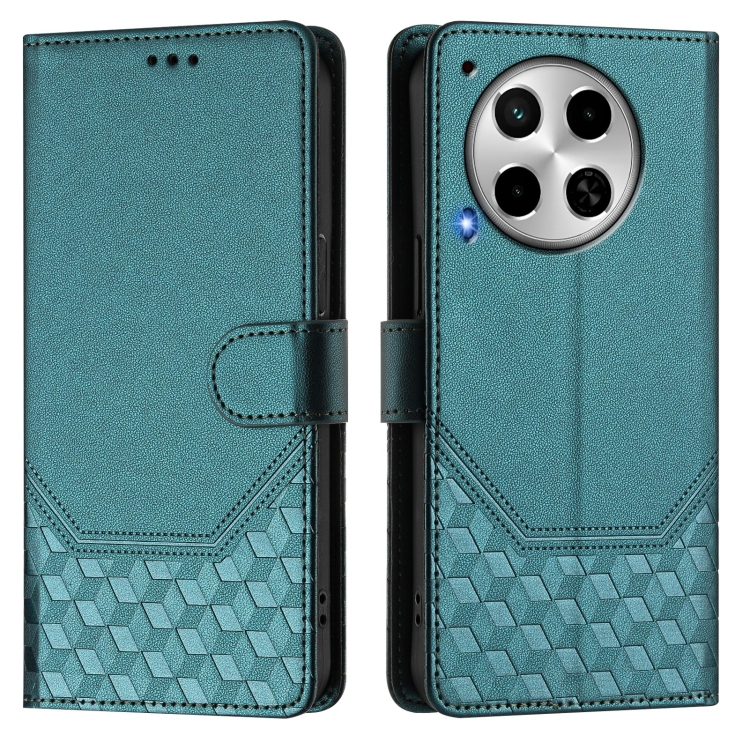 Funda de Cuero Rfid con Relieve en Panal para Tecno Camon 30 5G/4G (Verde Pavo Real)