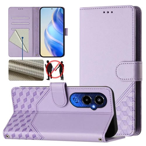 Funda de Cuero Rfid con Relieve en Panal para Tecno Pova 4 Pro 4G (Morado Claro)