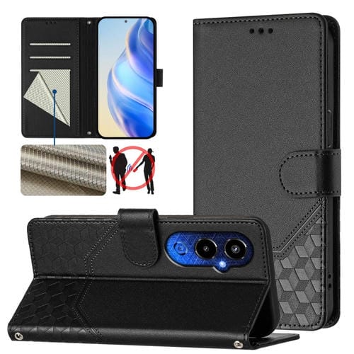 Funda de Cuero Rfid con Relieve en Panal para Tecno Pova 4 Pro 4G (Negra)