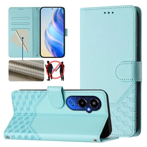 Funda de Cuero Rfid con Relieve en Panal para Tecno Pova 4 Pro 4G (Verde Menta)