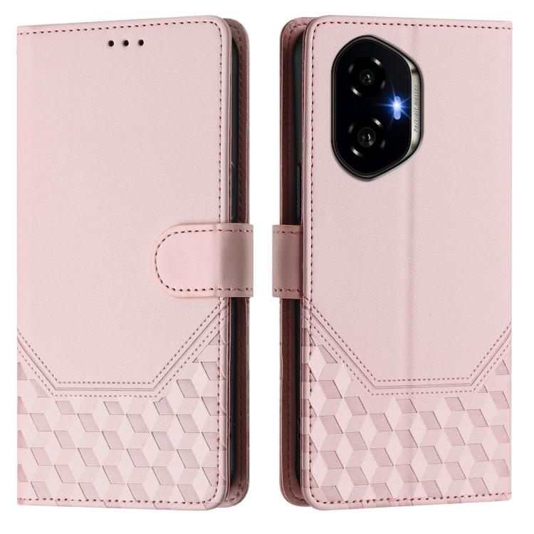 Funda de Cuero Rfid con Relieve en Panal para Honor 300 5G (Rosa)