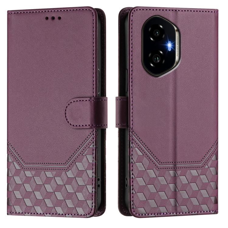 Funda de Cuero Rfid con Relieve en Panal para Honor 300 5G (Violeta)