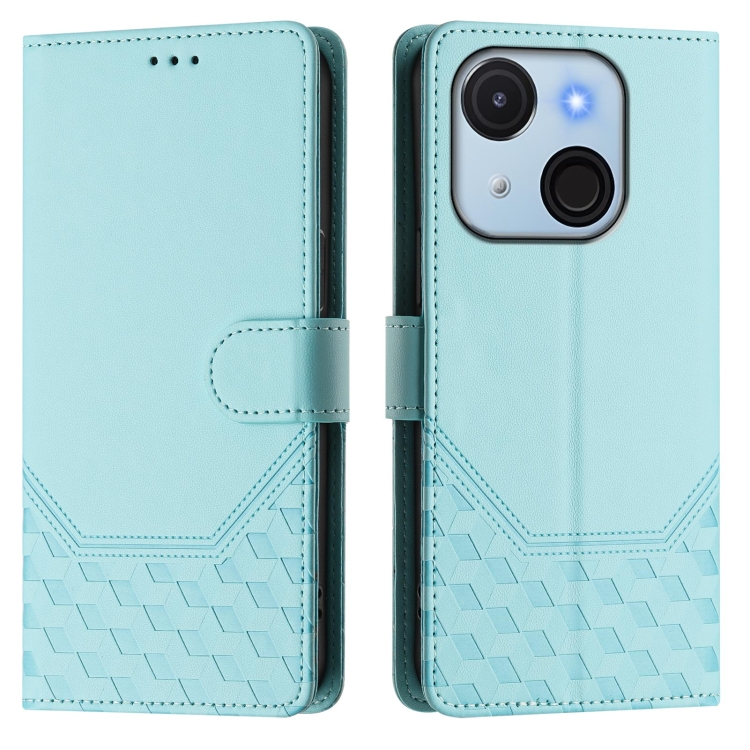 Funda de Cuero Rfid con Relieve en Panal para Teléfono Itel A50C (Verde Menta)