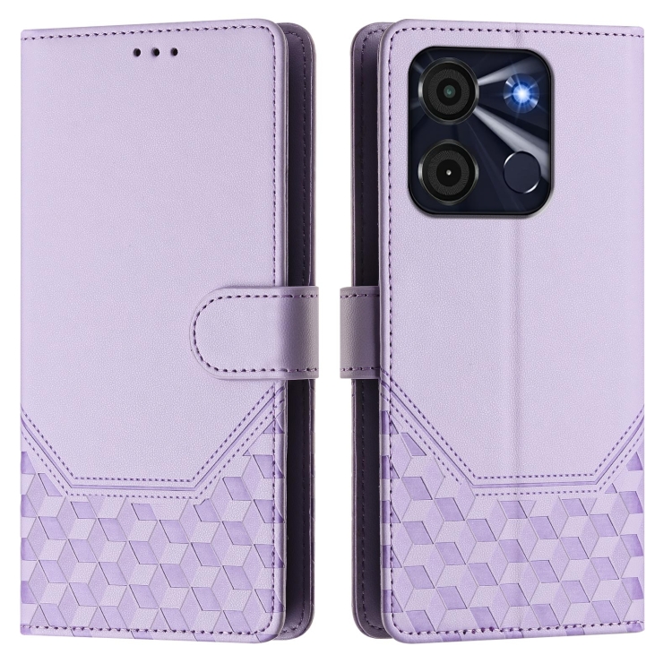 Funda de Cuero Rfid con Relieve en Panal para Teléfono Itel A60/A60S (Morado Claro)