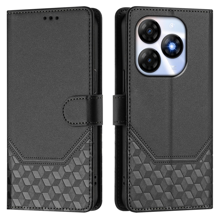 Funda de Cuero Rfid con Relieve en Panal para Itel P55 4G e Infinix Smart 8 (Negra)