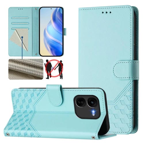 Funda de Cuero Rfid con Relieve En Panal para Vivo Iqoo Z9X (Verde Menta)