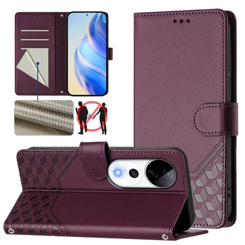 Funda de Cuero Rfid con Relieve En Panal para Vivo S19 Pro (Violeta)