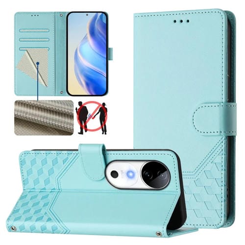Funda de Cuero Rfid con Relieve En Panal para Vivo S19 (Verde Menta)
