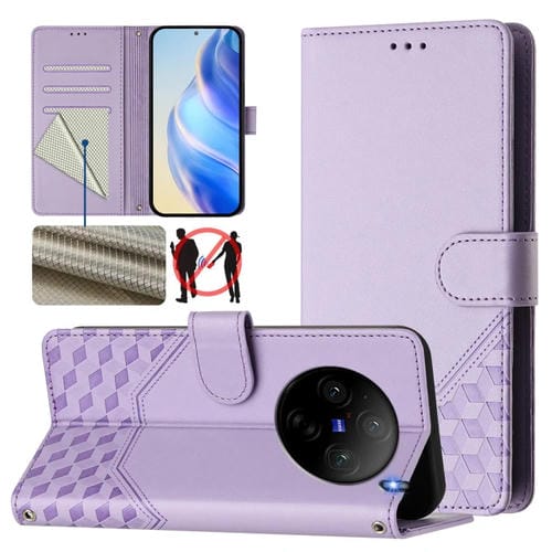 Funda de Cuero Rfid con Relieve En Panal para Vivo X100S 5G (Morado Claro)