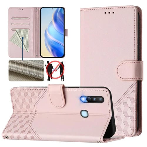 Funda de Cuero Rfid con Relieve En Panal para Vivo Y17/Y15/Y12/Y11 (Rosa)