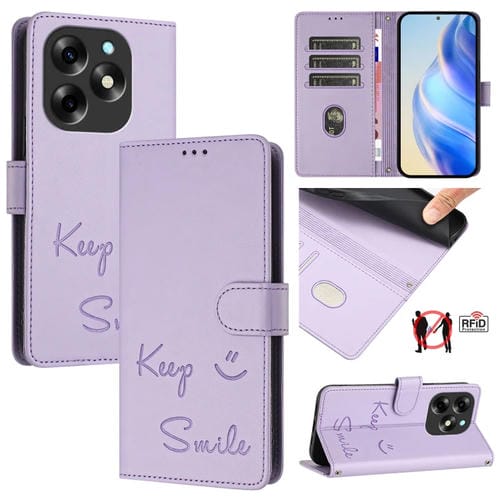 Funda de Cuero Rfid Smile Embossing para Teléfono Itel S23+ (Morado Claro)