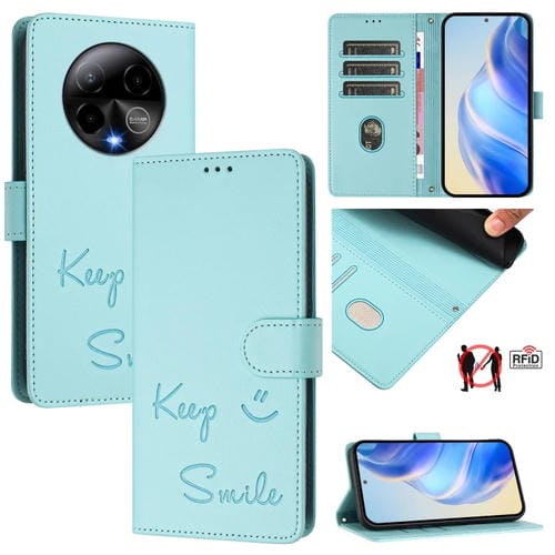 Funda de Cuero RFID con Relieve Smile para Teléfono Blu Bold K50 (Verde Menta)
