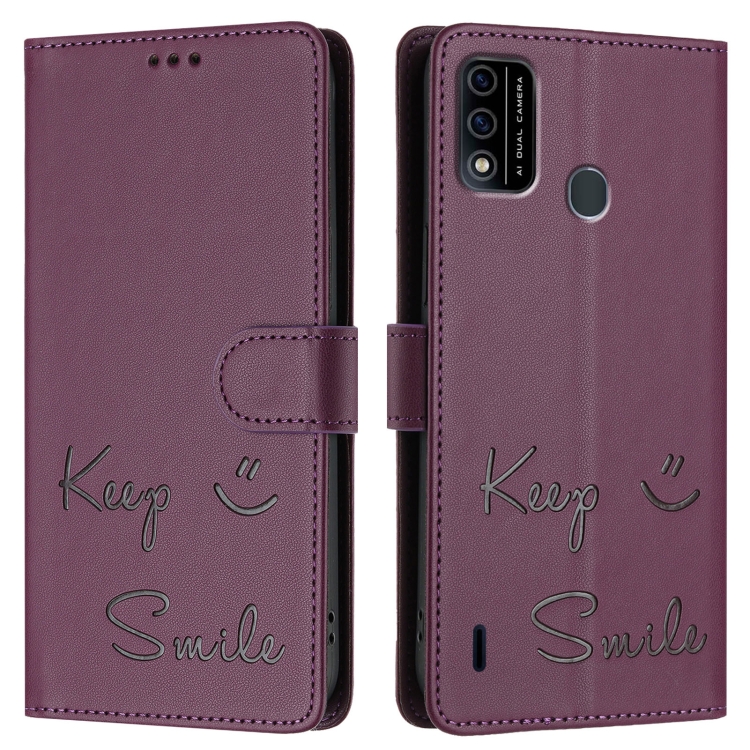 Funda de Cuero Rfid con Relieve Smile para Teléfono Itel A48 (Violeta)
