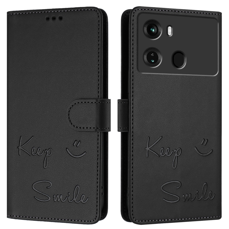 Funda de Cuero Rfid con Relieve Smile para Teléfono Itel P40 (Negra)
