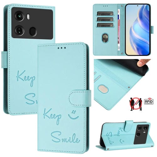 Funda de Cuero Rfid con Relieve Smile para Teléfono Itel P40 (Verde Menta)