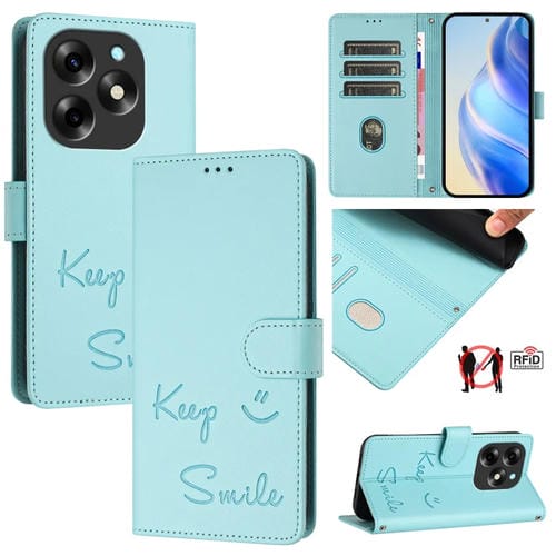 Funda de Cuero Rfid con Relieve Smile para Teléfono Itel S23+ (Verde Menta)