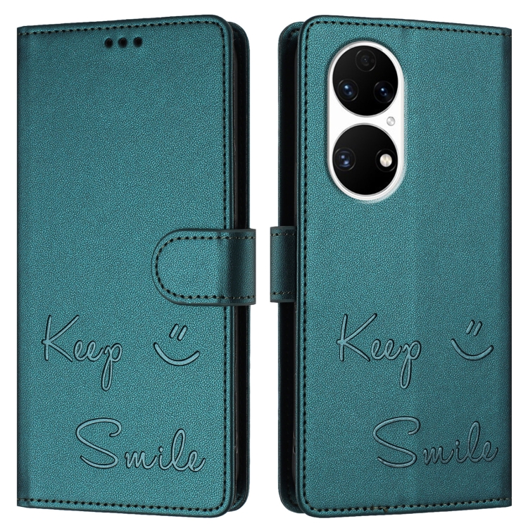 Funda de Cuero Rfid con Relieve Sonriente para Huawei Enjoy 50 Pro 4G (Verde Pavo Real)